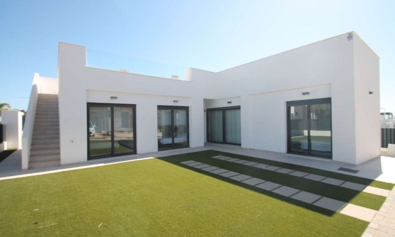 Modern villa with 3 bedrooms all in Planta Baja located in Lo Romero Golf, Pilar de la HoradadaModern villa for sale in Lo Romero Golf, Pilar de la Horadada, with a built area of 81 m² on a private plot of 249 m². The property features three bedrooms, three full bathrooms, a storage room, and a private garden, all on one level. Located within a gated residential complex with 24-hour security, it offers peace and privacy in a natural setting. The home is in excellent condition and is sold fully furnished, including air conditioning, built-in wardrobes, and appliances. A perfect choice for comfortable living or investment in a highly sought-after area next to the golf course.